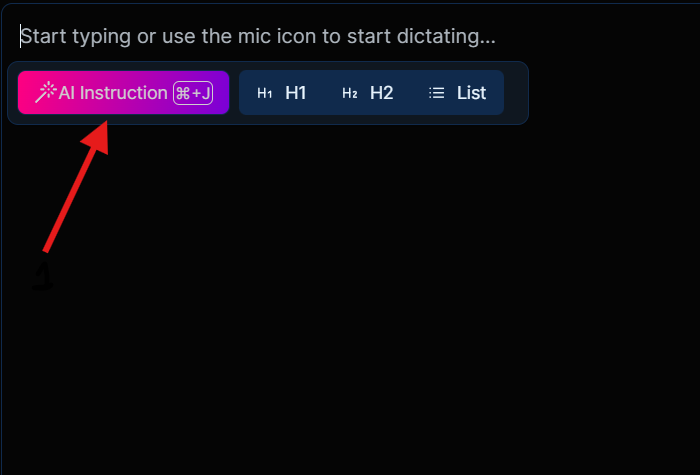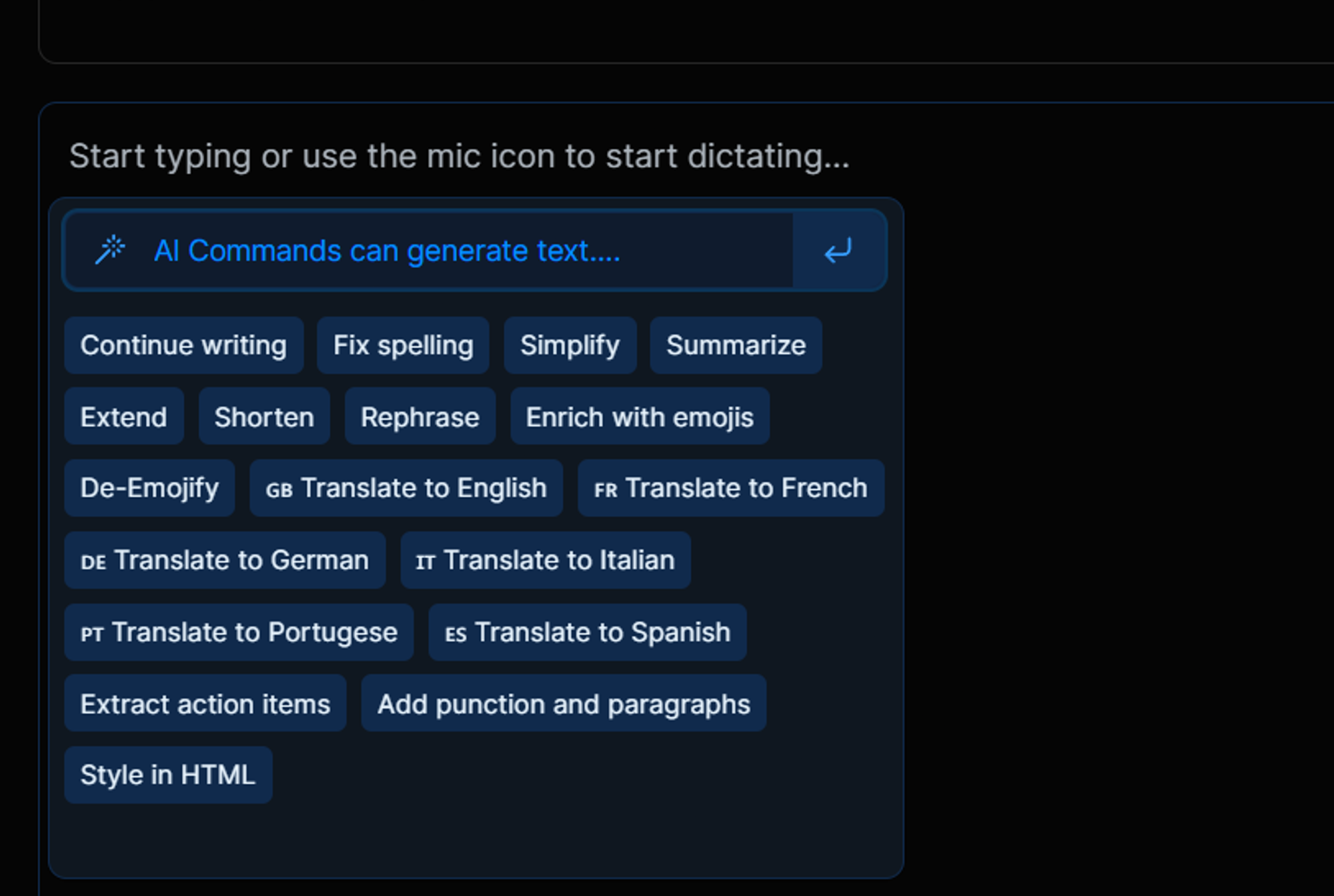 - Use the microphone icon at the bottom of the screen to dictate your content.